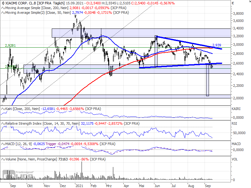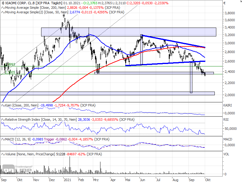 Die Märkte kannten vornehmlich nur eine Richtung. Sowohl das phantastische Management als auch die vielversprechende Entwicklung im Software-Segment machen die Xiaomi-Aktie zu einer der attraktivsten chinesischen Aktien die ich kenne. Nach einem weiteren Abschlag von knapp drei Prozent am Mittwoch notiert die Xiaomi-Aktie aktuell nur noch bei 226 Euro.